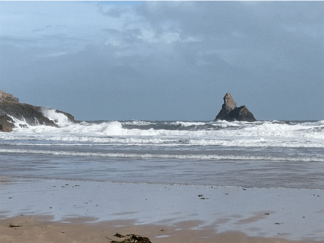 The witches’ cauldron is a short walk along the coastal path from this small beach - an amazing collapsed cave with greeny-blue water that has a natural stone bridge over it.